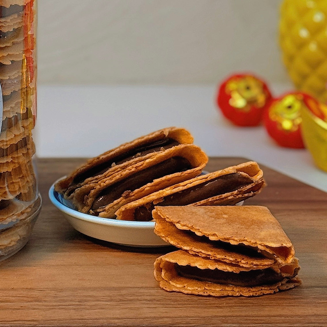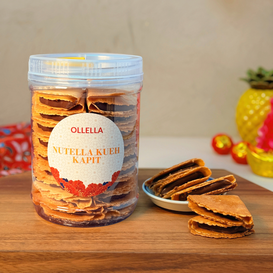 Crispy traditional kueh kapit filled with smooth Nutella spread.